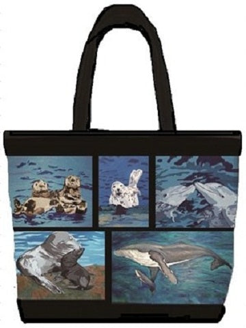 Our aquatic animal tote is the purrfect way to carry just about anything. Use it for your everyday handbag. The large handles allows for it to be wore over the shoulder or carried by the hand. Zippered compartments on the inside allow for easy organization. The water resistant microfiber allows for the image, taken from original oil paintings to pop with amazing detail and color Water resistant microfiber,foam padding, zip top closer, two-tone handle, silver-tone circle zipper pull, polyester lining, inside zip pocket with silver-tone heart zipper pull , cell phone pocket, slit pocket.