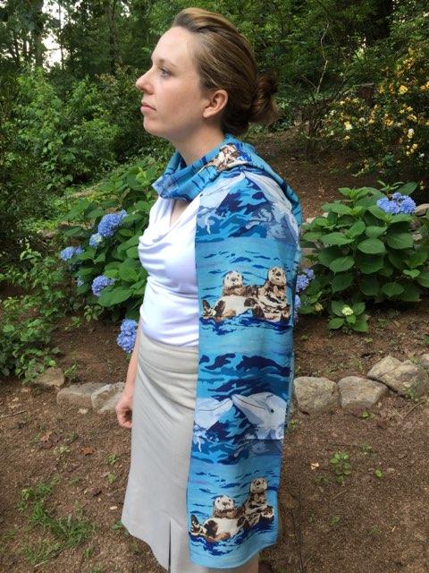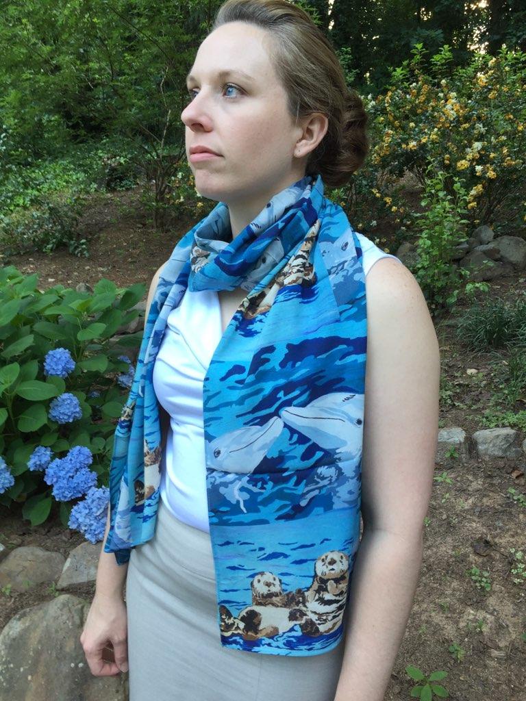 Ocean Animals Animal Viscose Scarf- Sea Otter and Dolphins - Best Friends and The Kiss