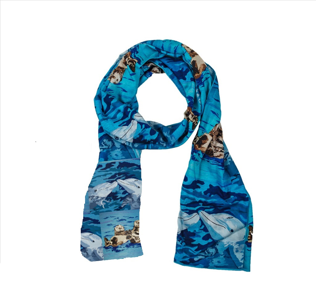 About Ocean Animals Animal Viscose Scarf- Sea Otter and Dolphins - Best Friends and The Kiss