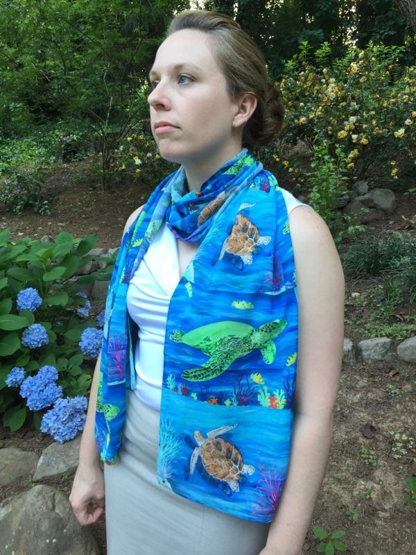 About Sea Turtles Animal Viscose Scarf- Green Sea Turtle and Loggerhead Sea Turtle - Wisdom and The Pilgrim