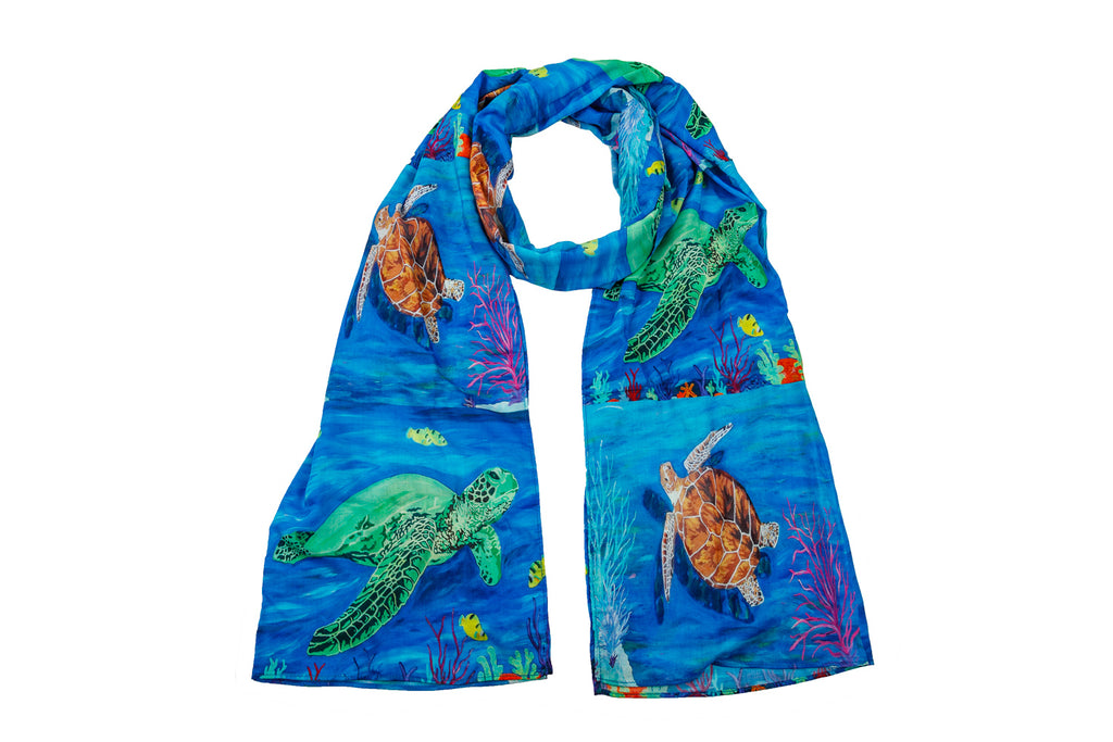 Sea Turtles Animal Viscose Scarf- Green Sea Turtle and Loggerhead Sea Turtle - Wisdom and The Pilgrim