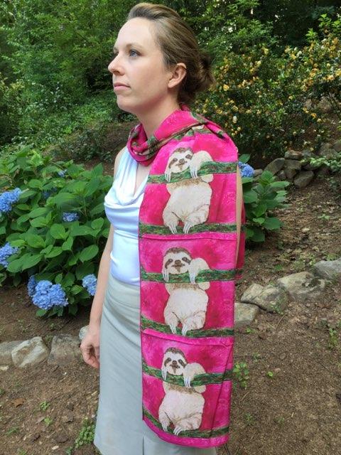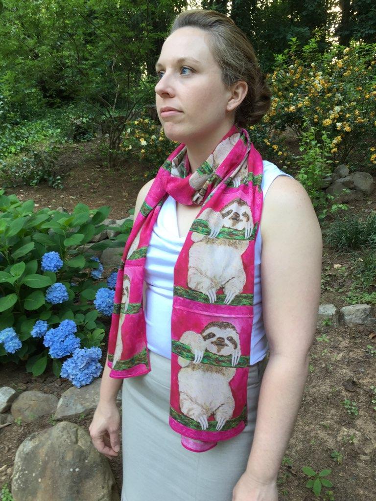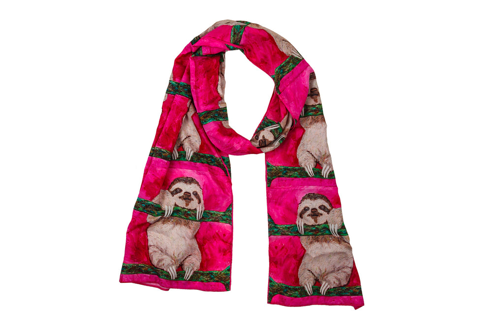 The Salvador Kitti's animal scarf is the purrfect fashionable gift for any animal lover. The scarf is made from luxurious 100% viscose and features the original art of our founder Amy Pugh. Two images, taken from original oil paintings, of a adorable sloth are repeated in panels all over the scarf like a matching patchwork. At 160x45cm, the scarf is long and wide enough to fold several different ways for varying styles. Give the gift of style and art with our unique scarves!