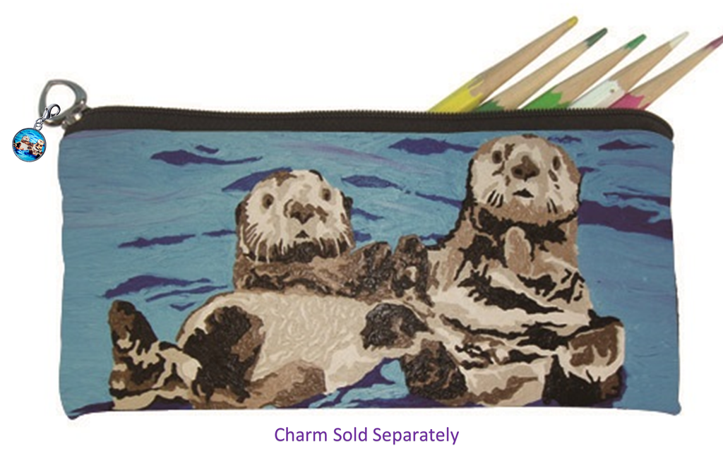Our sea otter pencil bag is great for your kittens to use at school but also makes a carrier for eyeglasses. This is the ideal size for storing inside a purse or book bag. Water Resistant Microfiber, Double Sided Print, polyester lining, zip top closer, silver-tone heart shaped zipper pull.