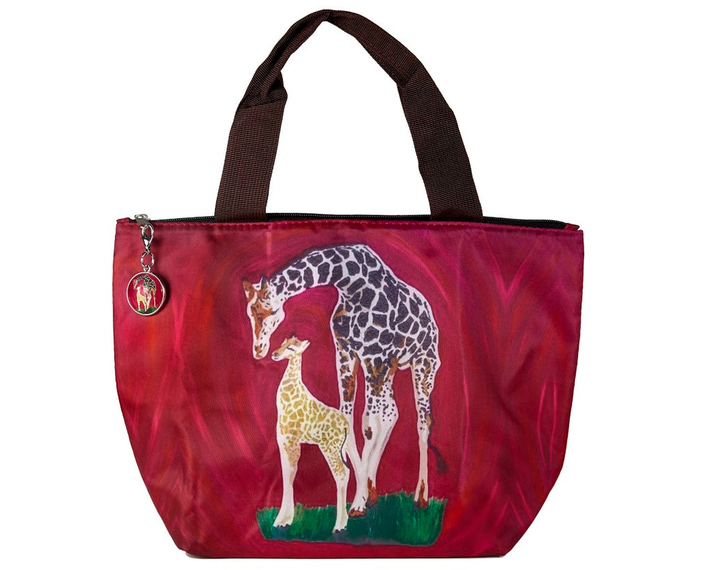 Keep your food and drinks fresh in style with our giraffe lunch bag. Suitable for meals, snacks, or drink, the lunch bag insulated so cold and warm items stay warm. Take your goodies to school or work in unique and artistic style Polyester, Fully insulated, silver foil lining, zip top closer, polyester double handle, Silver-tone zipper, and matching detachable zipper charm. 35 x 24 x 12 cm, 13.7 x 9.4 x 4.7 inches. Care and cleaning: spot clean with damp cloth