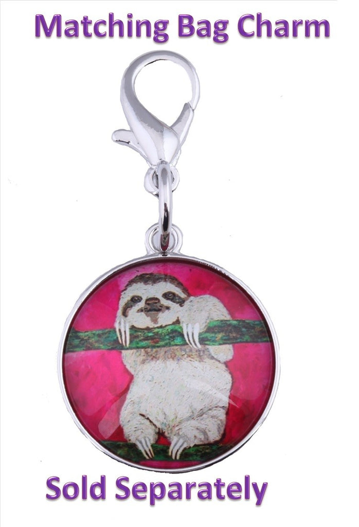 Our Sloth book bag features water resistant microfiber, foam padding, two outside compartments with zippers, two silver circle zipper pulls, adjustable shoulder straps 38-70 ...