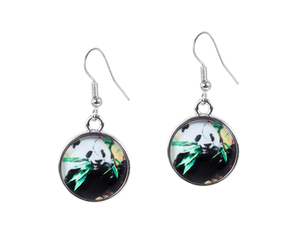 Salvador Kitti's panda earrings are purrfect wearable art for any animal lover. Pick your favorite animal design or color coordinate with your outfits. This petite earring is light weight and comfortable. The earring is a total length of about 1 1/2 inches. The wide is about 1/2 inch. The charm is a 16mm stainless steal bezel. The front is glass, the back is engraved with the Salvador Kitti logo. Our earrings come with our custom hang-tag, which describes the heart-warming story of the founding of Salvador Kitti.