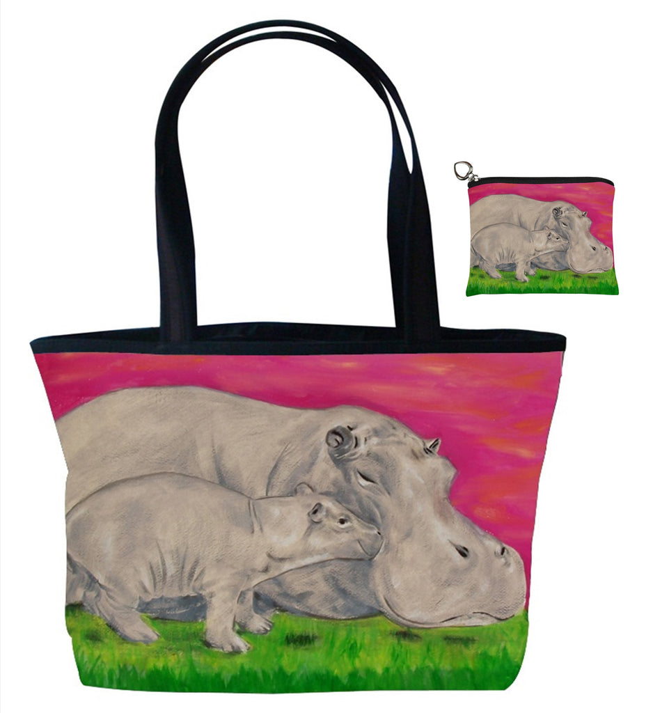 Purrfect Hippo Tote and Matching Hippo Change Purse Makes a Purrfect Set