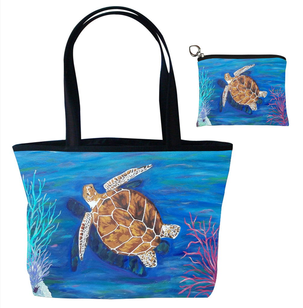 Purrfect Loggerhead Sea Turtle Tote and Matching Loggerhead Sea Turtle Change Purse Makes a Purrfect Set