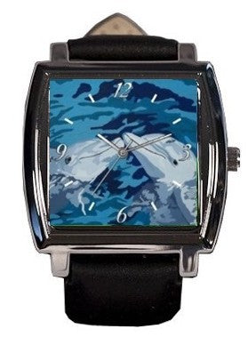 The Salvador Kitti dolphin watch is purrfect wearable art for any animal lover. All of our watches feature the original art of our founder Amy Pugh. Our battery operated watches have Japanese movement and come with a durable faux leather black band and sliver tone case. They come in metal black collector’s box, great for gift giving.