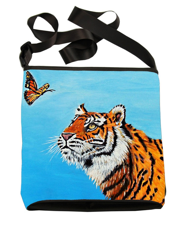 Our kitten tiger cross body bag can be an ideal everyday bag for just about any use. It compact size makes it a great size for teens or for anyone that likes a more petite ba...