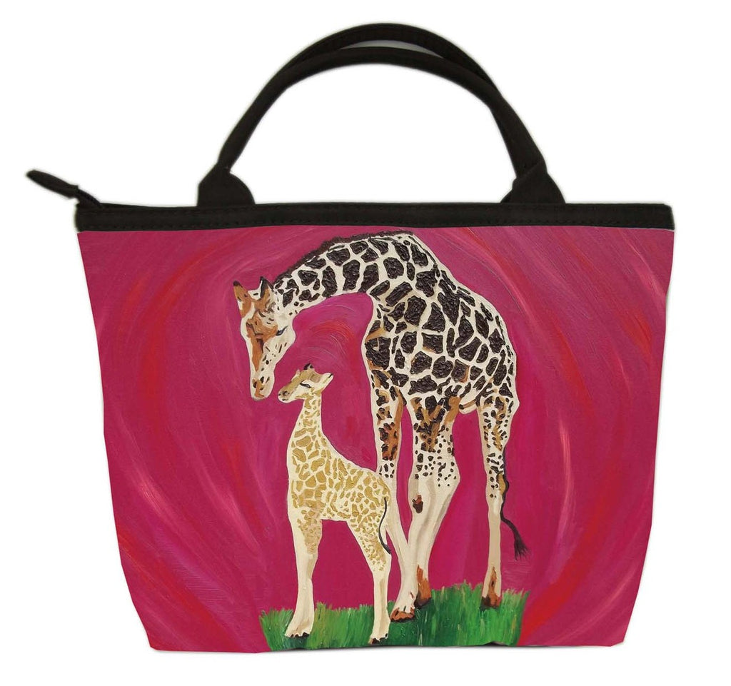 This petite giraffe purse is what cool for all the kittens in your life. It can be a cute purse for young girls, or a toiletry bag for all those mature cats. Zippered compartments inside allow for easy organization. Water resistant microfiber, foam padding, zip top closer, microfiber black handle, silver-tone circle zipper pull, polyester lining, inside zip pocket with silver-tone heart zipper pull.