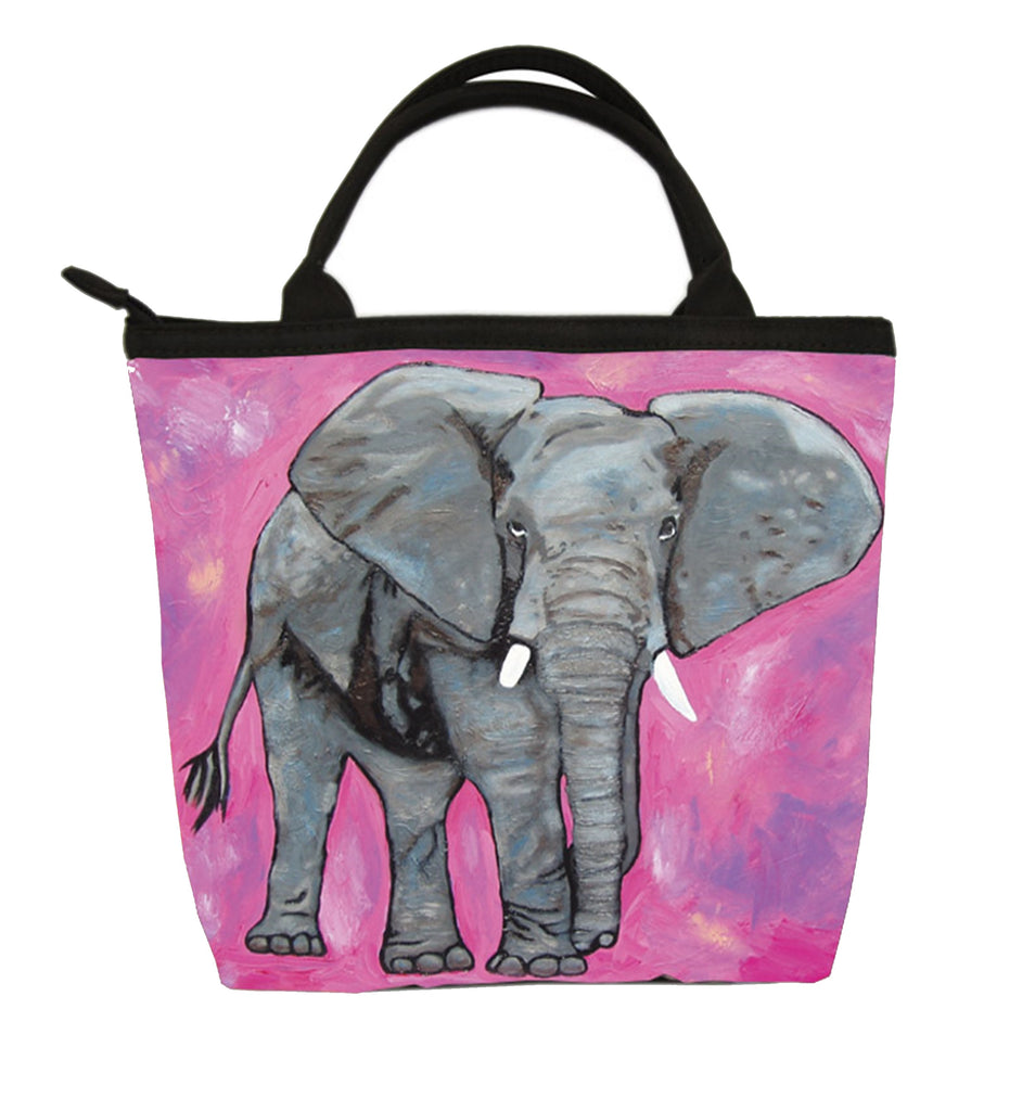 This petite elephant purse is what cool for all the kittens in your life. It can be a cute purse for young girls, or a toiletry bag for all those mature cats. Zippered compartments inside allow for easy organization. Water resistant microfiber, foam padding, zip top closer, microfiber black handle, silver-tone circle zipper pull, polyester lining, inside zip pocket with silver-tone heart zipper pull.