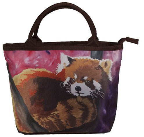 This petite red panda purse is what cool for all the kittens in your life. It can be a cute purse for young girls, or a toiletry bag for all those mature cats. Zippered compartments inside allow for easy organization. Water resistant microfiber, foam padding, zip top closer, microfiber black handle, silver-tone circle zipper pull, polyester lining, inside zip pocket with silver-tone heart zipper pull.