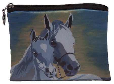 Change Purse: Double Sided Print ● foam padding ● zip around closer ● silver-tone heart shaped zipper pull ● 5 x 4 inches, 12 x 9.5 x 1 cm