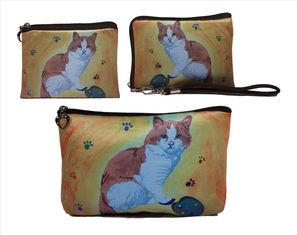 Matching Cat Change Purse, Cat Small zip around wristlet and Cat cosmetic bag