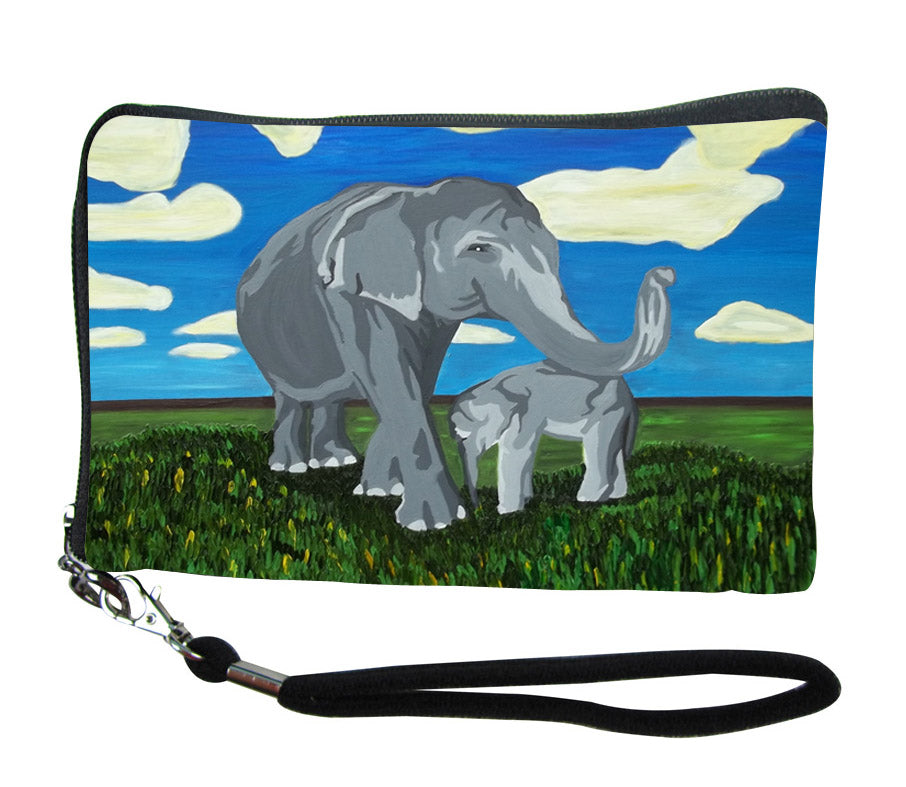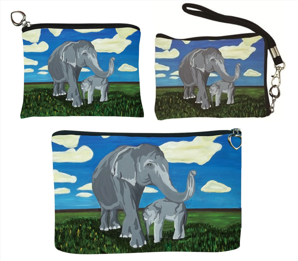 Matching Elephant Change Purse, Elephant Small zip around wristlet and Elephant cosmetic bag