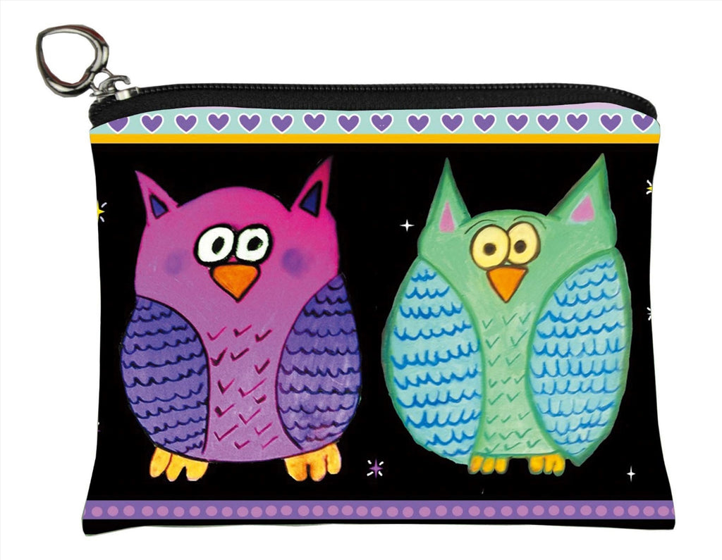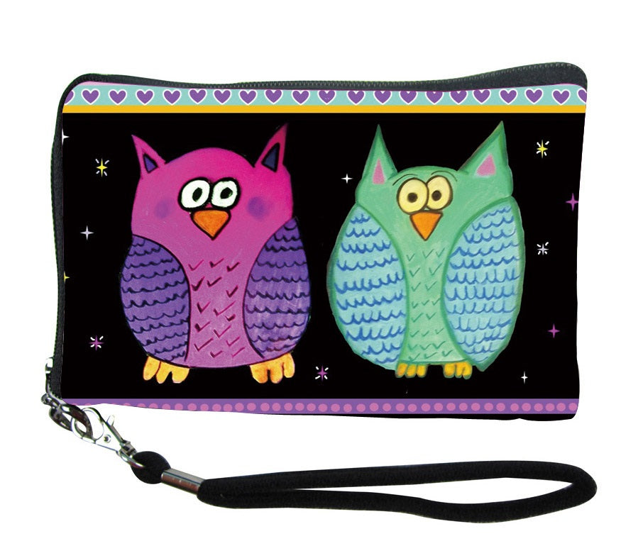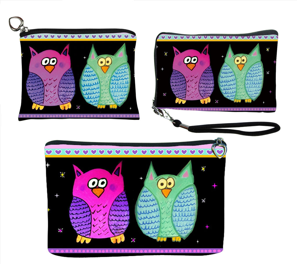 Matching Owl Change Purse, Owl Small zip around wristlet and Owl cosmetic bag