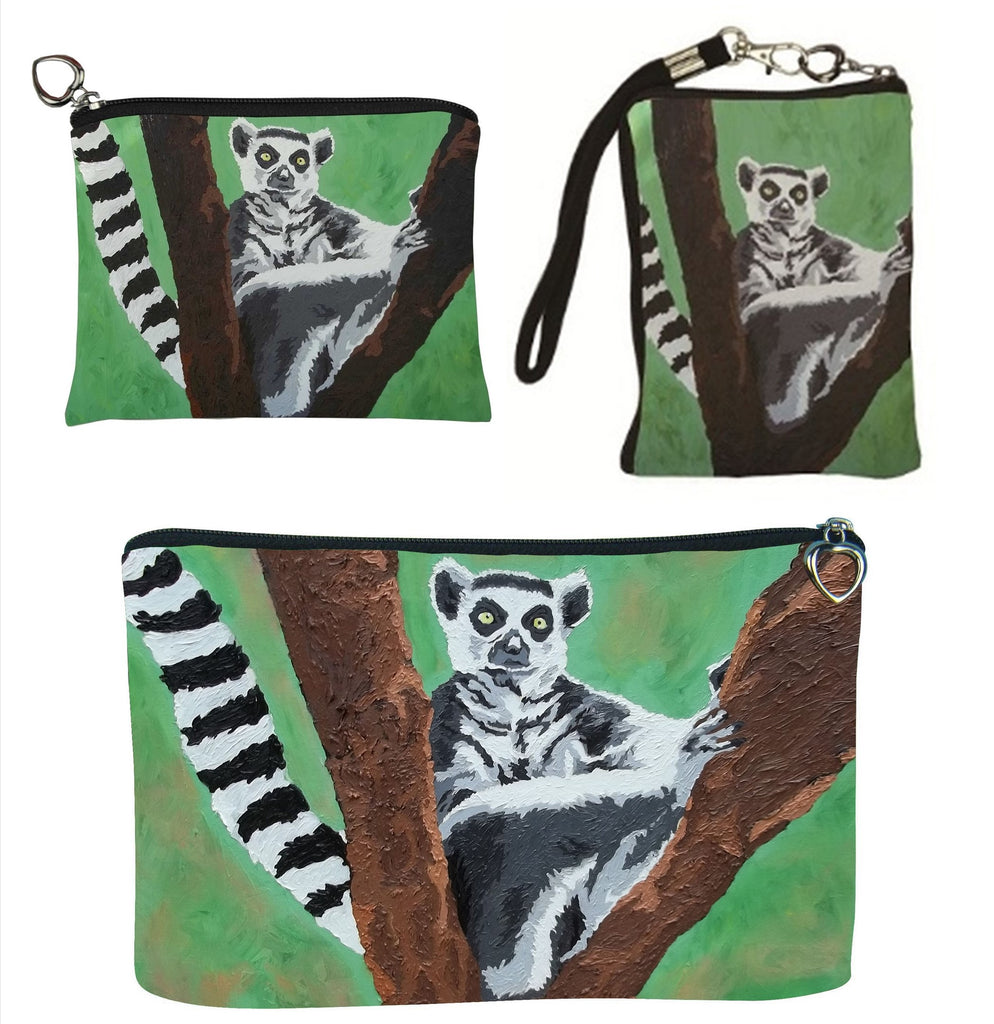 Matching Lemur Change Purse, Lemur Small zip around wristlet and Lemur cosmetic bag