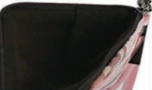 Cosmetic Bag: Double Sided Print ● Microfiber ● foam padding ● zip top closer ● silver-tone heart shaped zipper pull ● polyester lining ● two inside slip pockets ● 7.5 x 5 inches, 19 x 12.5 x 2 cm