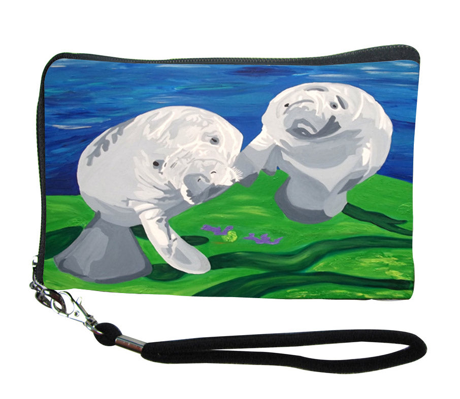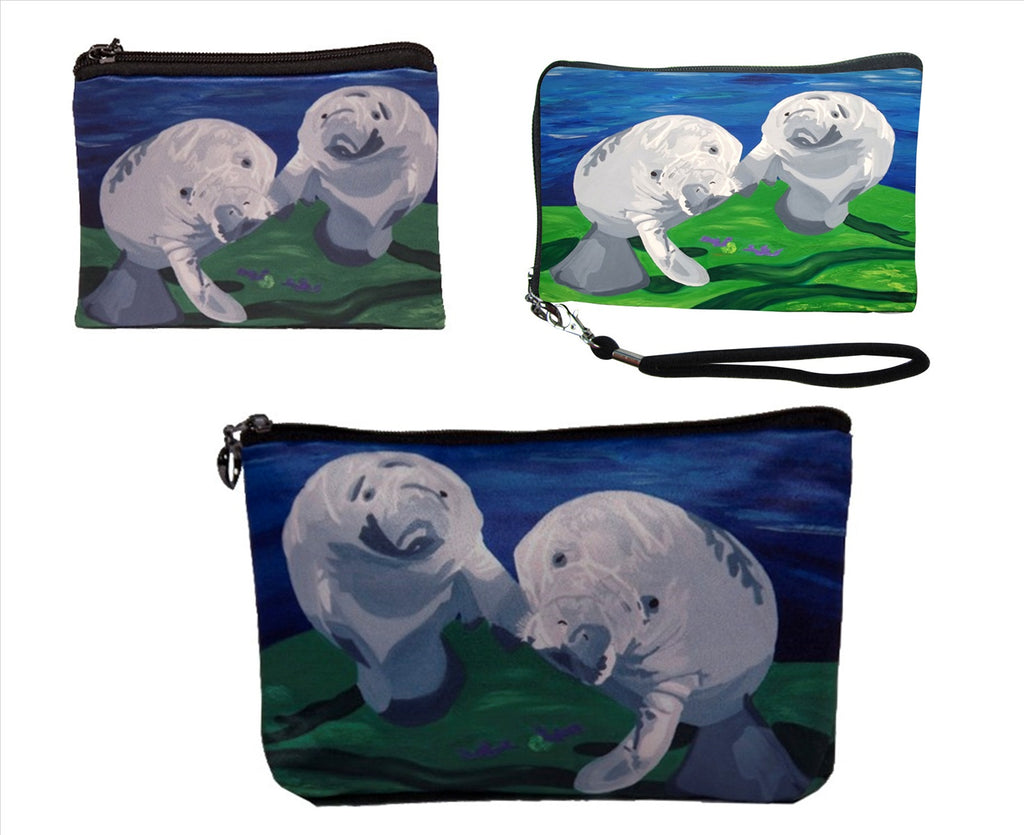 Matching Manatee Change Purse, Manatee Small zip around wristlet and Manatee cosmetic bag