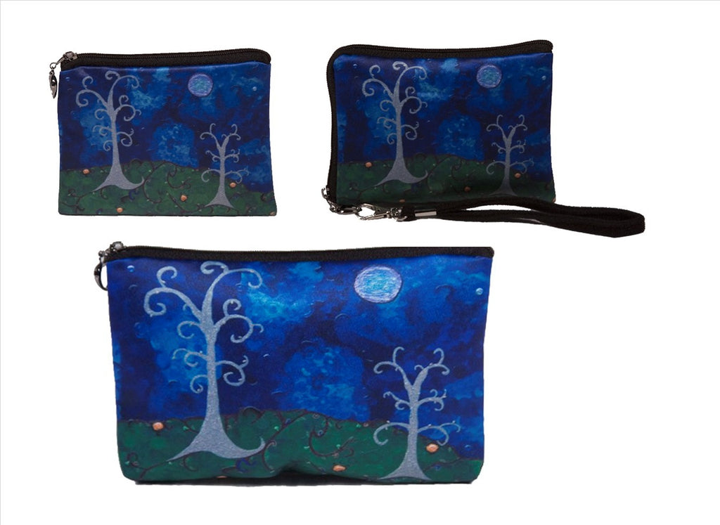 Matching Whimsical Trees Change Purse, Whimsical Trees Small zip around wristlet and Whimsical Trees cosmetic bag