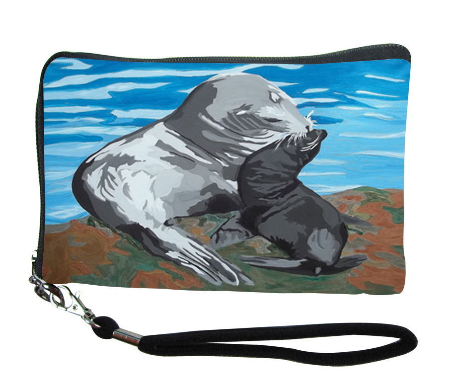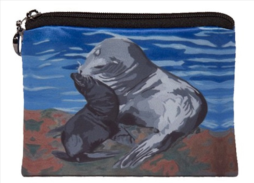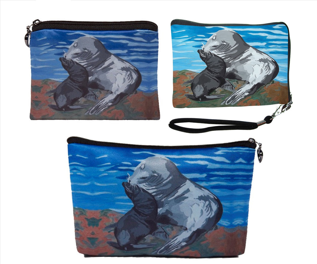 Matching Sea Lion Change Purse, Sea Lion Small zip around wristlet and Sea Lion cosmetic bag