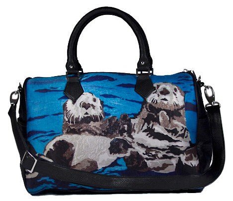 Our butter soft vegan sea otter leather bag is the ultimate in luxury for all those posh kittens out there. It features a detachable shoulder strap that is also adjustable for versatility. It has a footed bottom, protecting it from dirt and from getting torn when set down, and which also keeps the bag upright and maintains it shape when set down. Zippered compartments inside allows for easy organization. It is made of an ultra-sturdy water-resistant microfiber which allows for the image, taken from original oil paintings to pop with amazing detail and color. Butter soft vegan leather,detachable adjustable vegan leather shoulder strap, vegan leather handles with whip detail, double sided microfiber print, zip top closer, two outside pockets, silver-tone zipper pull polyester lining, inside zip pocket, cell phone pocket, footed bottom.