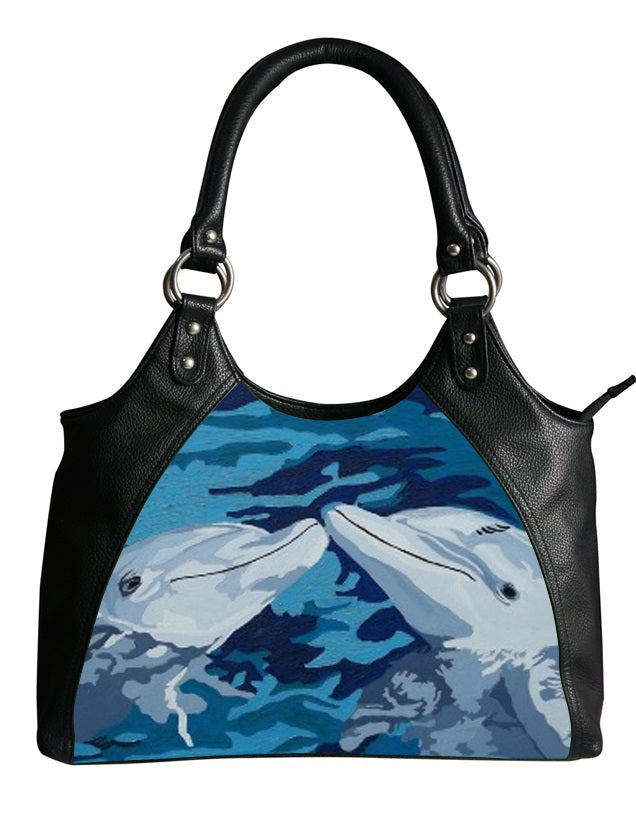 Our Retro Cat vegan leather dolphin bag is fashion forward, versatile, and stylish, It purrfect for an everyday purse. The straps are large enough to wear over the shoulder. The straps and outer portions are made of high-quality vegan leather in black, while the center portion containing the print is made of water resistant microfiber. The microfiber allows for our signature images, taken from original oil paintings, to pop with dynamic color and vibrancy. They feature over-sized silver-tone hardware and multiple pockets. Butter soft vegan leather, double vegan leather shoulder strap, microfiber front, zip top closer, outside zip compartment, large silver-tone hardware, polyester lining, inside zip pocket, cell phone pocket. 12 x 15 x 4 inches, 30 x 38 x 10 cm